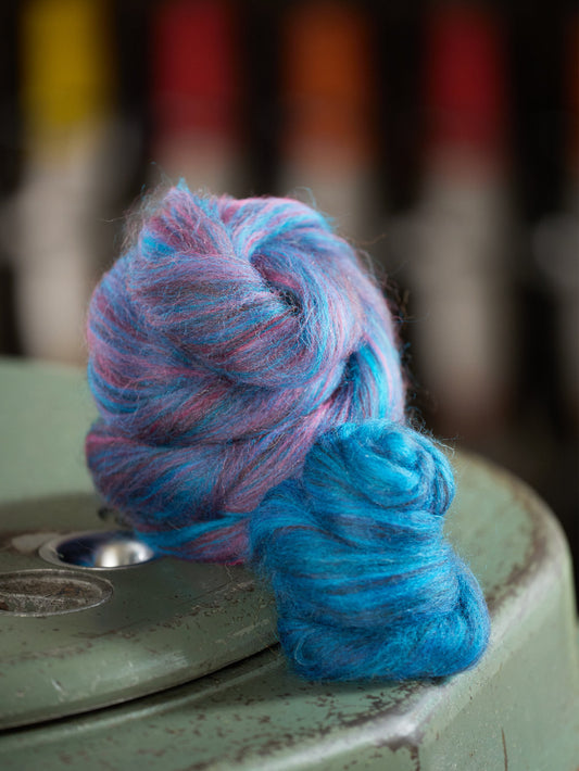 Our tops are prepared and blended at our Devon Mill into beautifully aligned and even ropes of fibre. They are made from breed specific sheep fibre (locally farmed whenever possible) and high grade, ethical silk and alpaca. You will find our newest fibre tops below.