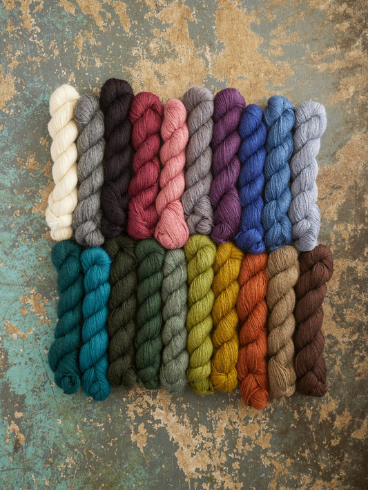 Available in 20 shades in 4ply, DK, Minis and Tops. 50% Exmoor Blueface / 30% Bluefaced Leicester / 20% Romney. Non-superwash.