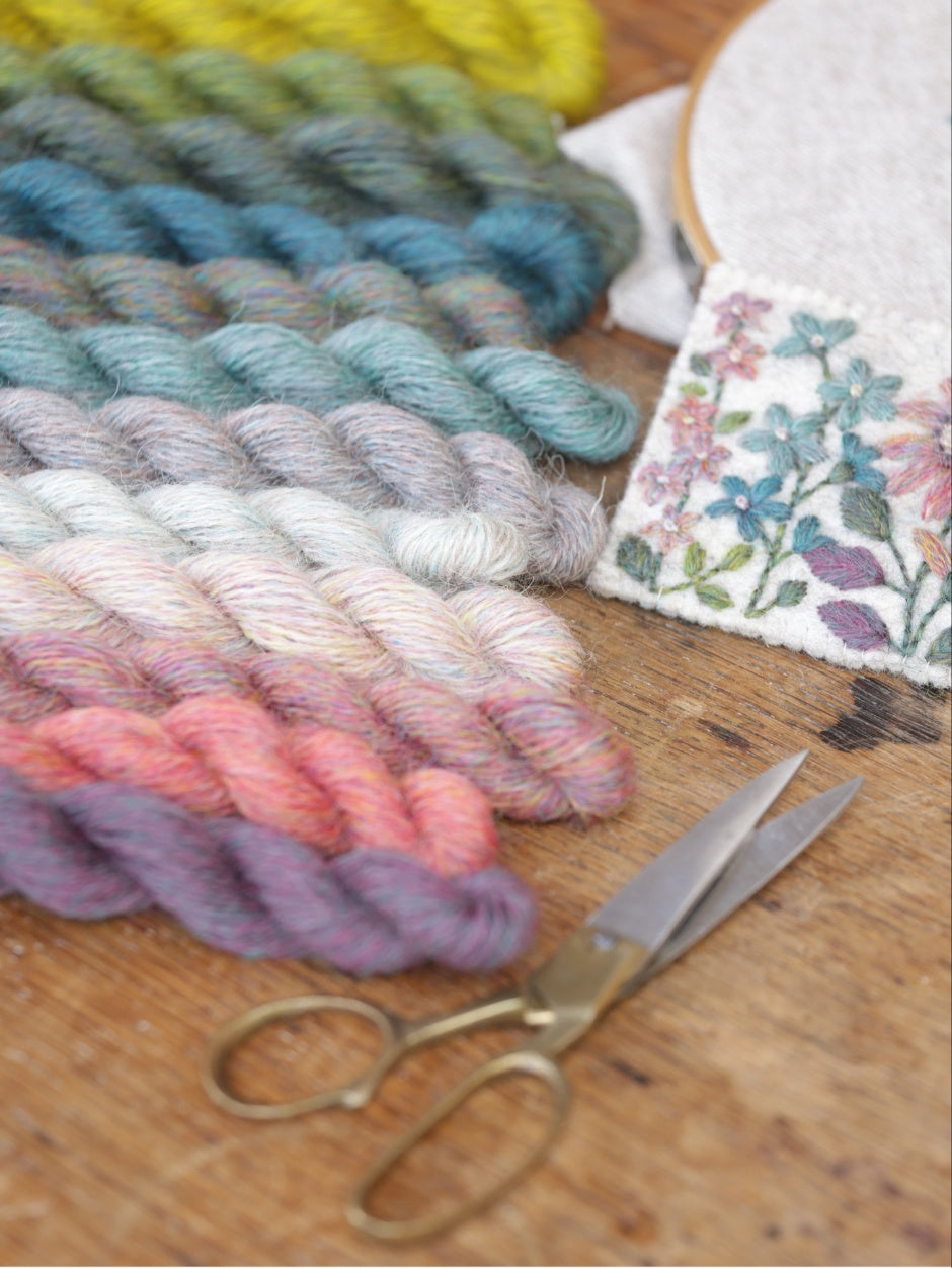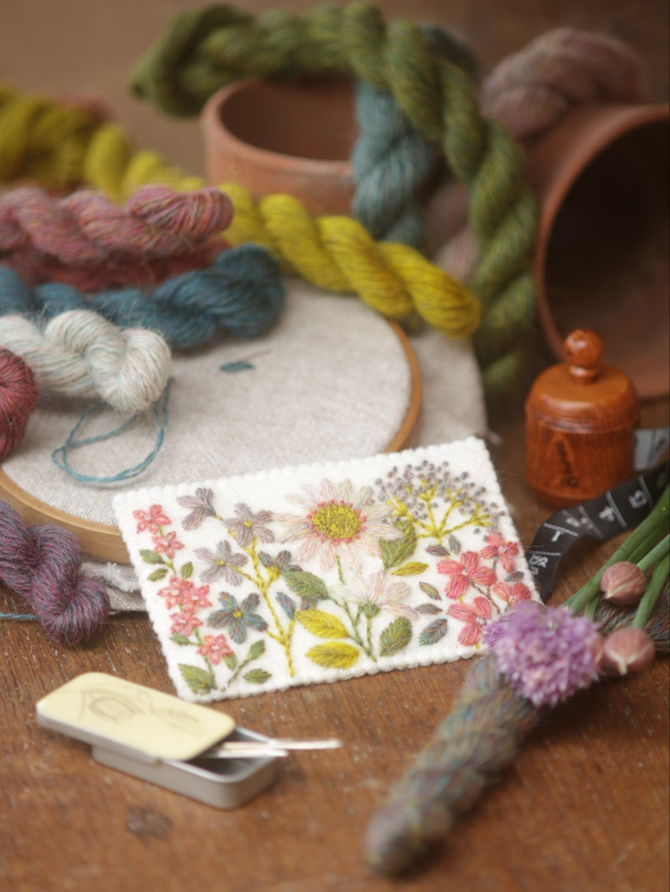 Our Annual Four features two samplers and an embroidered project bag, each using different shades of our Appledore Lace to create a stunning floral scene, whether you like a summery-feel or a more autumnal vibe.