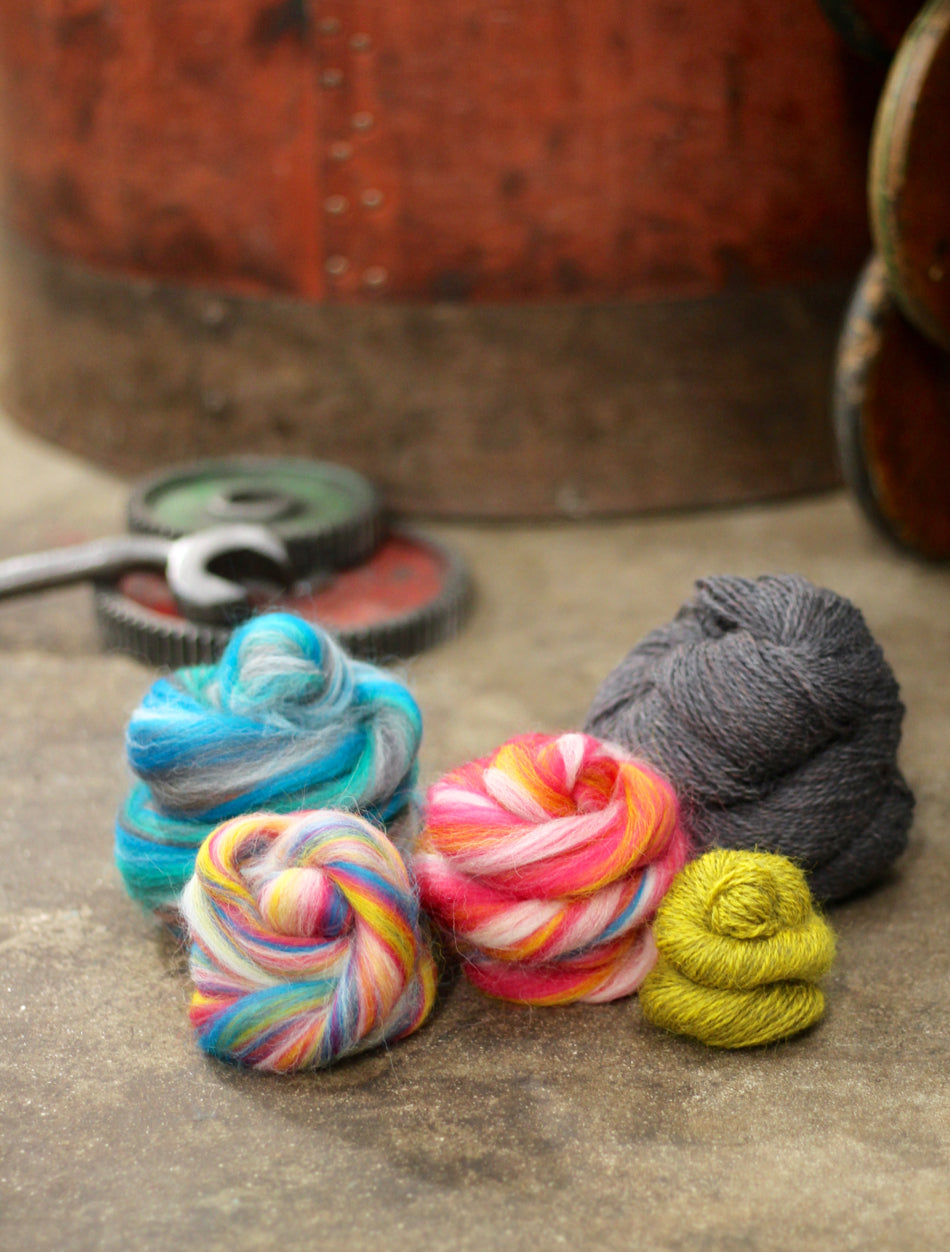 Our Mill is one of only a handful of small-scale worsted spinning mills still operating in the UK. Many of our vintage machines were rescued from old, traditional mills before their closure. Keeping them going is a labour of love, but we reckon that the resulting woolly treats are well worth it!
