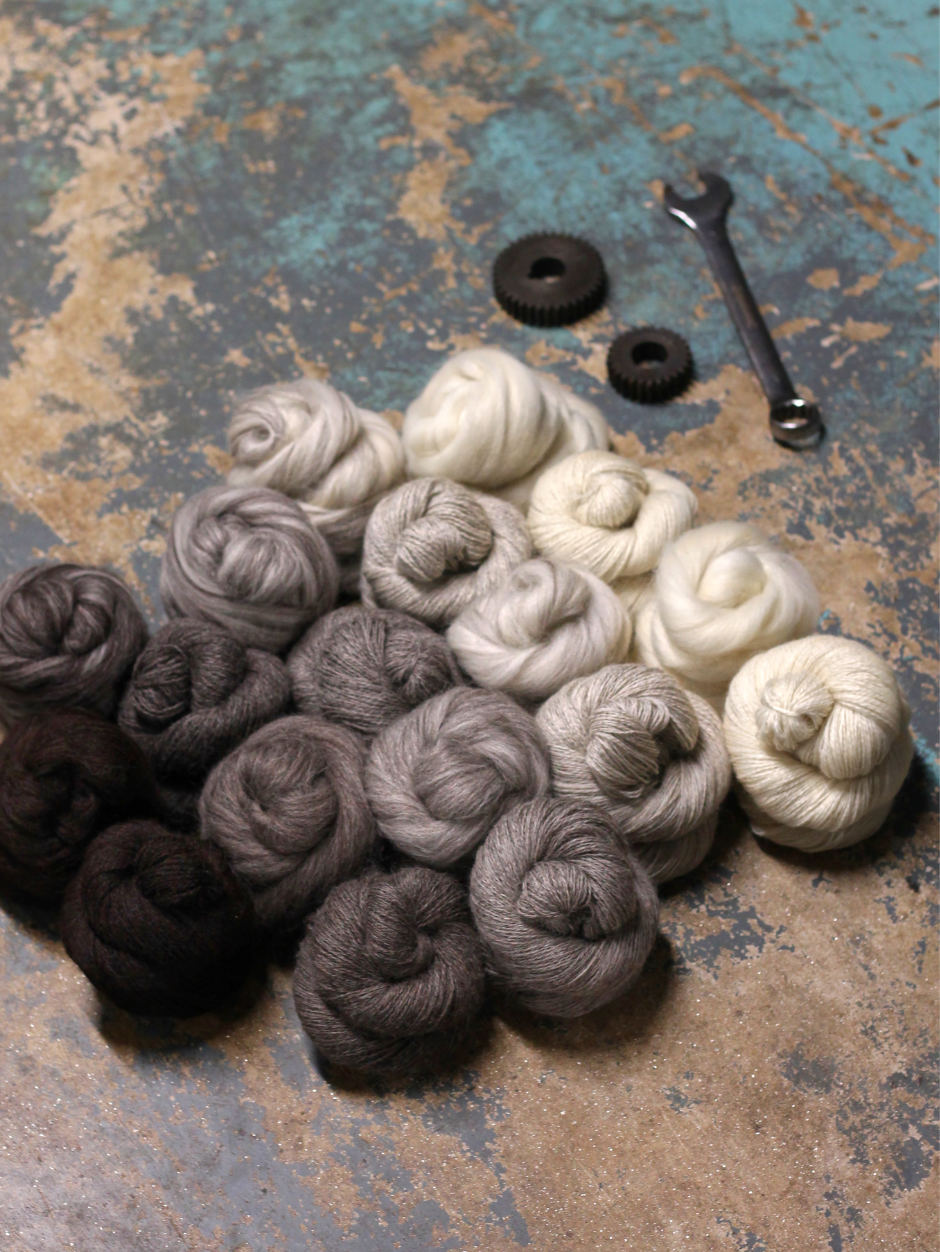Colour Blending: We start with solid coloured tops (aligned fibre) and blend them together using precise recipes to create our nuanced shades.