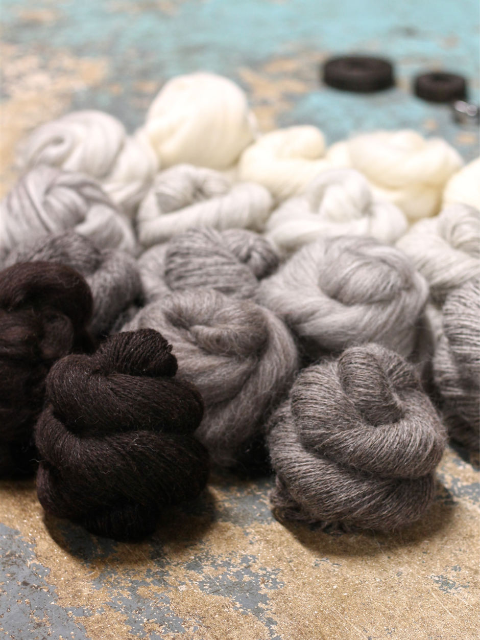 Our Devon Naturals range is a curated selection of our local wool in undyed gradient shades. We offer two blends: One consisting of Exmoor Blueface and Zwartbles, and the second one of Grey Exmoor Blueface and Romney. Each of these breeds is available both separately and in a blended gradient of each combo so you can get the best of both!