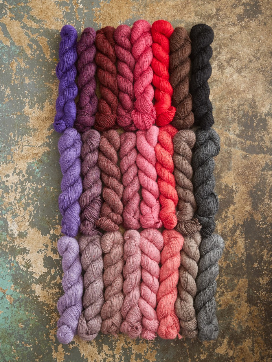 The entire range is created from a handful of base colours, making it easy to find harmonious colour combos for colourwork projects.