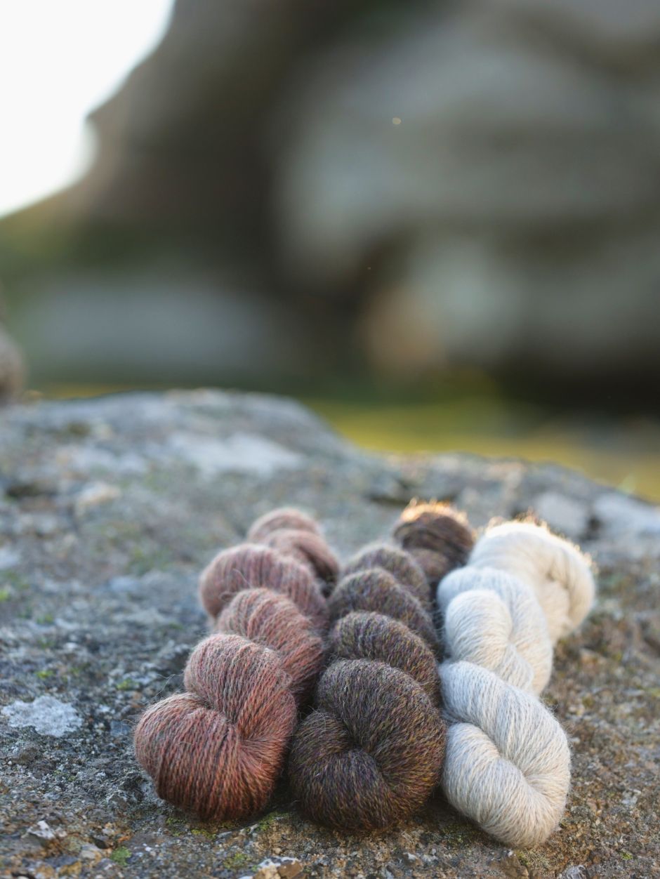 First you chose a soft and lustrous blend of Corriedale, Grey Exmoor Blueface and Romney. It is mostly Corriedale, a gorgeously soft and bouncy fibre, well suited to pretty much anything you might fancy making in it! You chose to blend this Corriedale with soft and lustrous Grey Exmoor Blueface, and then to enhance the drape by adding a dash of Romney. The resulting yarn is buttery soft with a gentle handle and warm, woolly character. We’ve accentuated this softness by spinning Mineralogy as a 2-fold, giving it a subtle stitch definition and delicate halo.