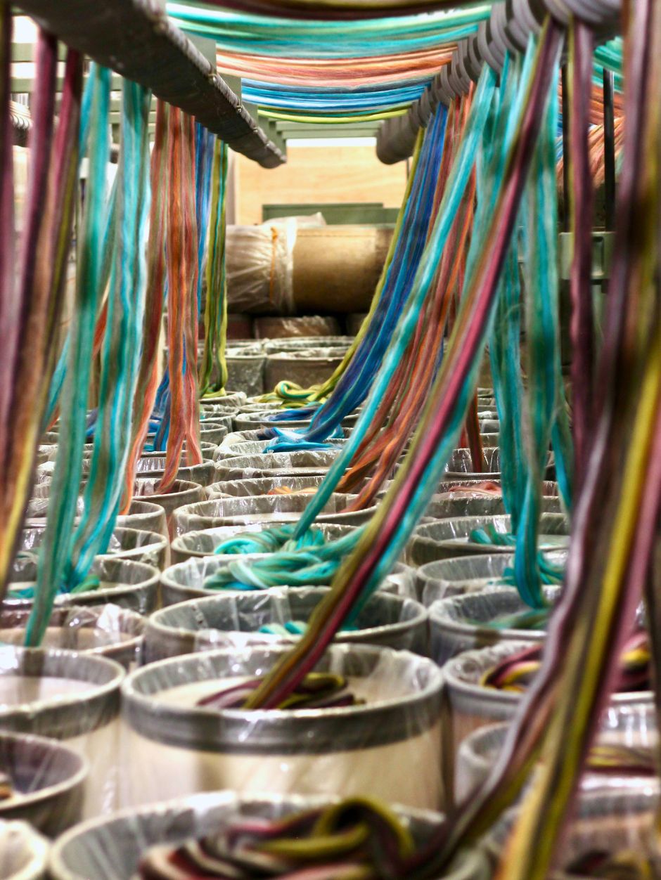 Colour Blending: We start with solid coloured tops (aligned fibre) and blend our nuanced, heathered shades using precise recipes. If you look closely at any of our yarns, you’ll see that each heathered shade contains a multitude of colours within it.