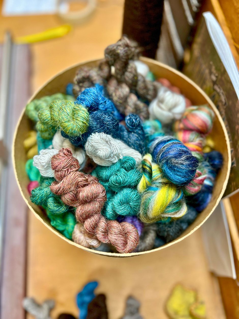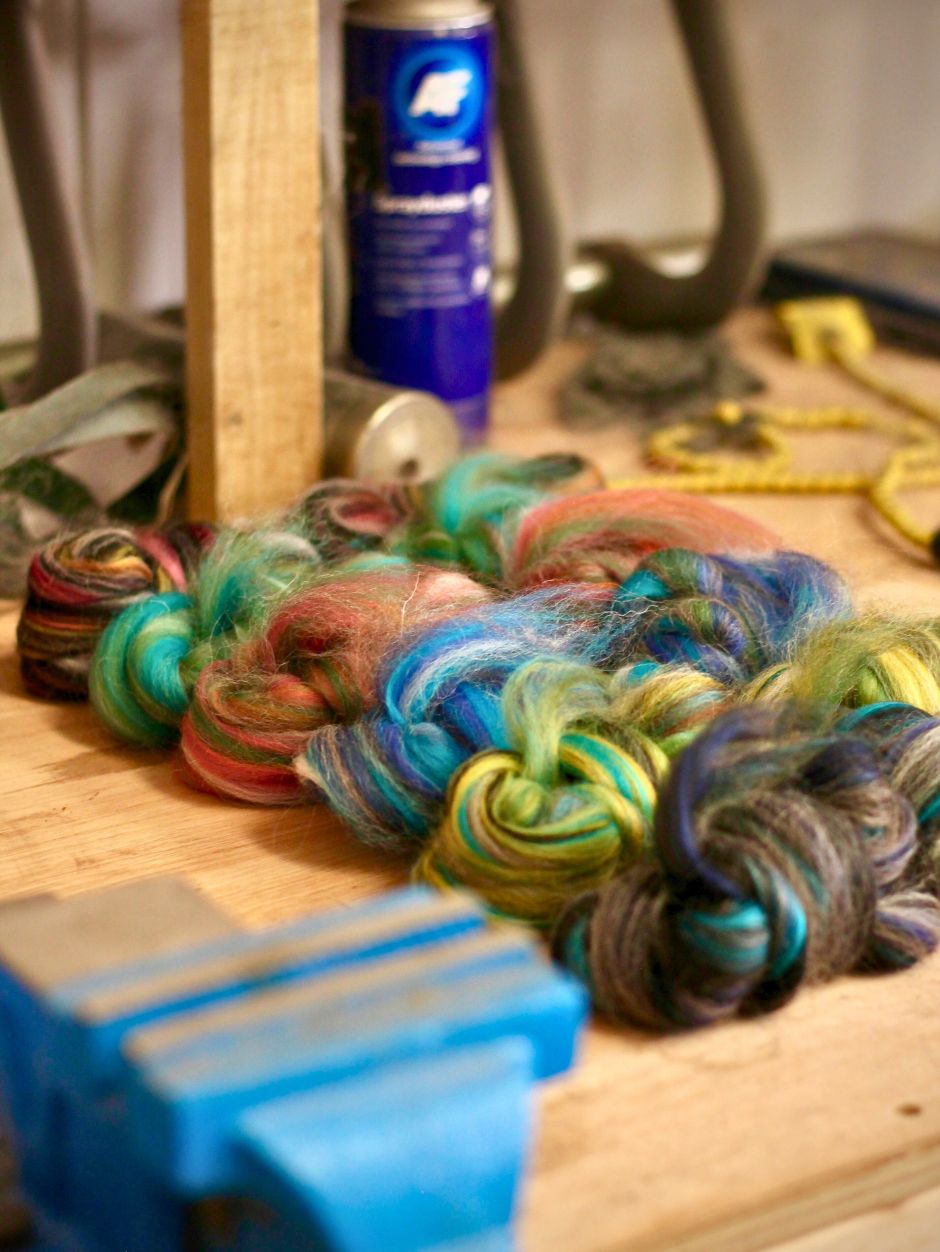 Colour Blending: We start with solid coloured tops (aligned fibre) and blend them together using precise recipes to create our nuanced shades.