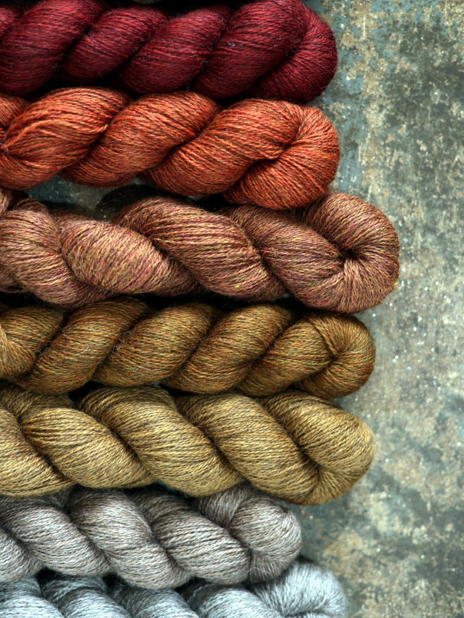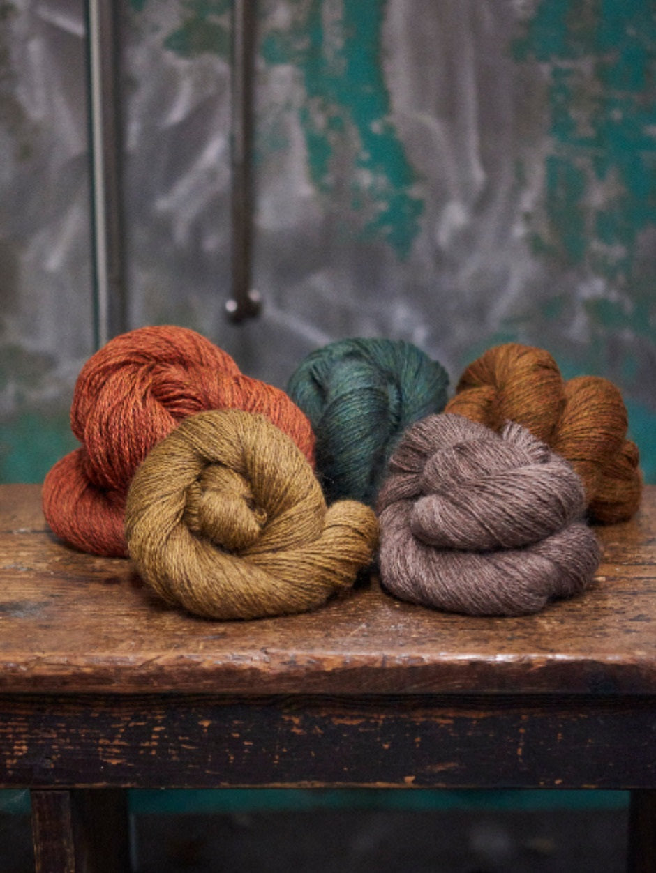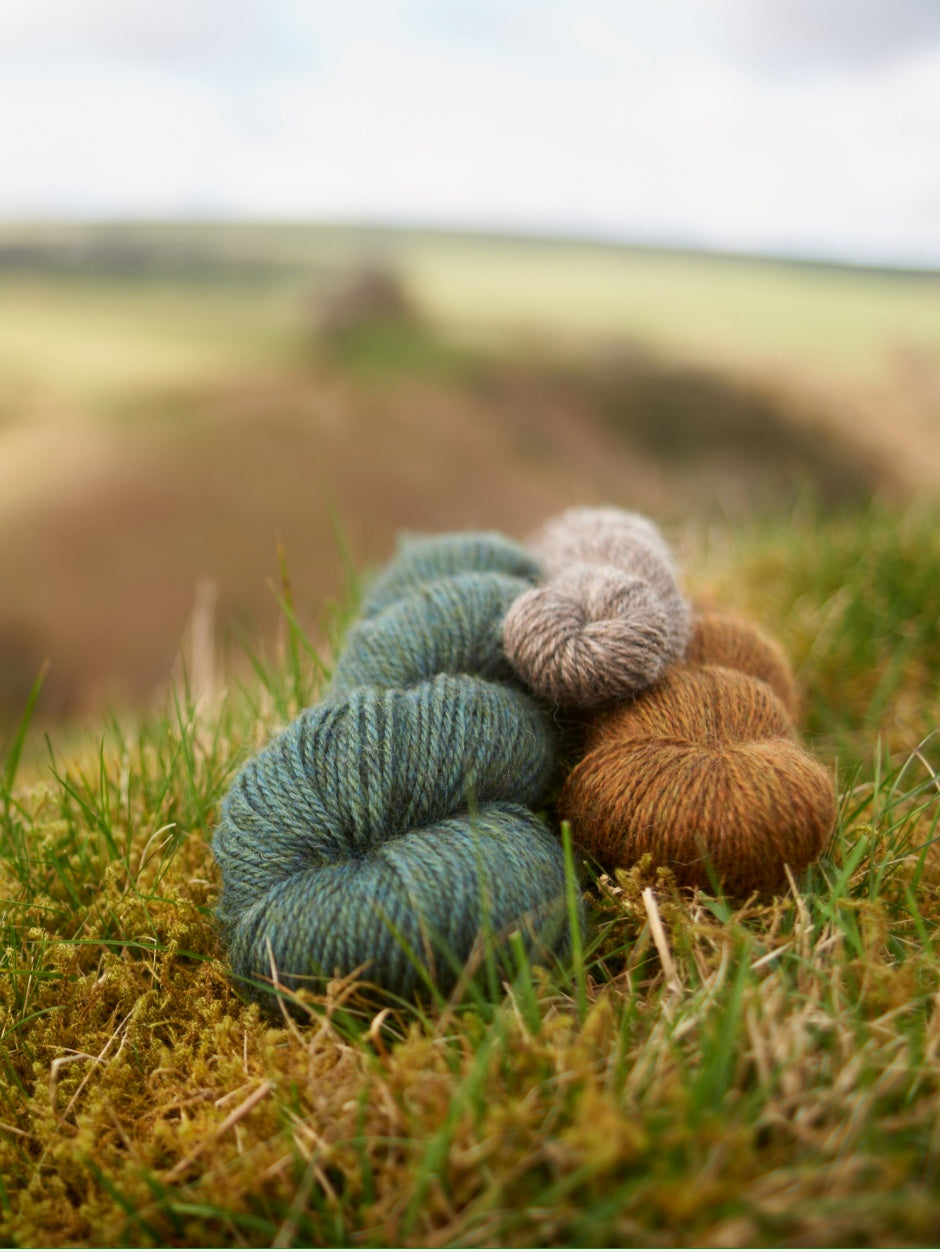 Inspired by the subtle tones of autumn in our Devon landscape, we set out to achieve a similar effect by blending the super saturated tones of our dyed Falklands Merino and lustrous Bluefaced Leicester with the naturally dark fibre of Devon-farmed Zwartbles. Together, they create a sublime depth of colour – transforming the resulting Harvest Hues yarn into complex, mottled, autumnal shades.