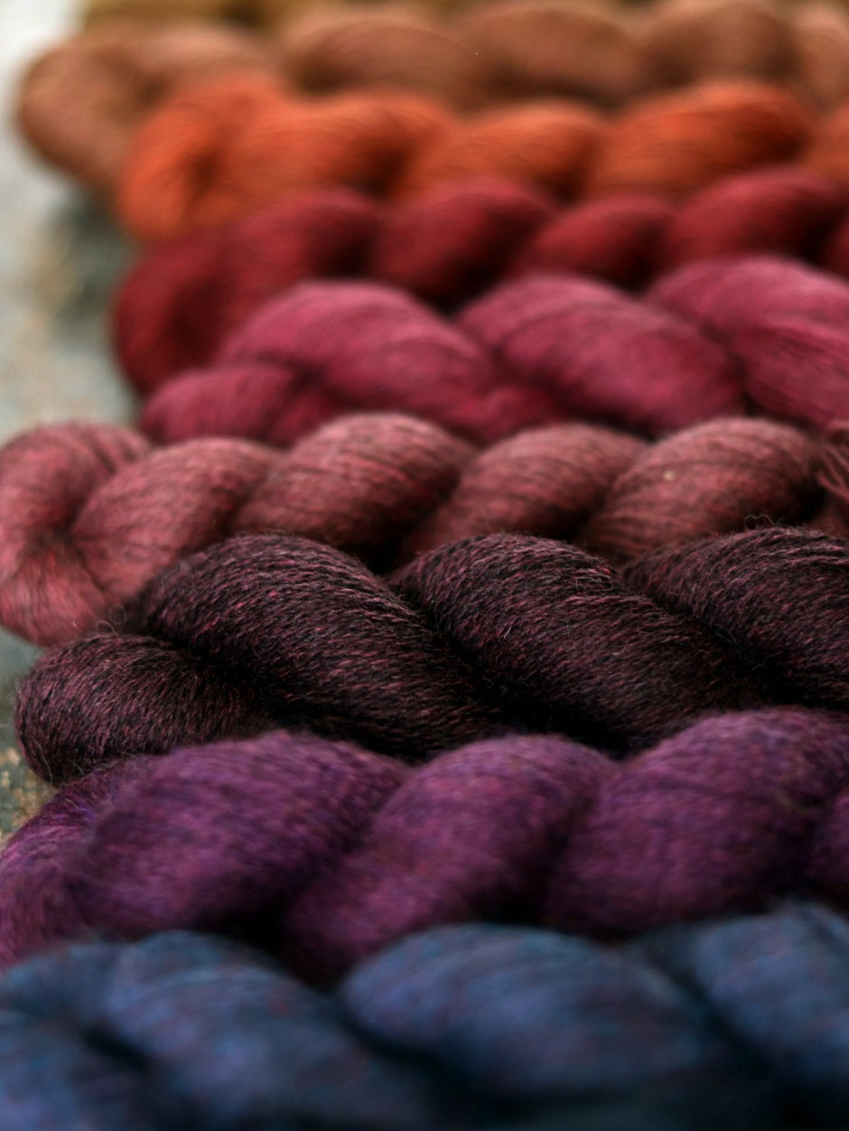 The entire range is created from a handful of base colours, making it easy to find harmonious colour combos for colourwork projects.