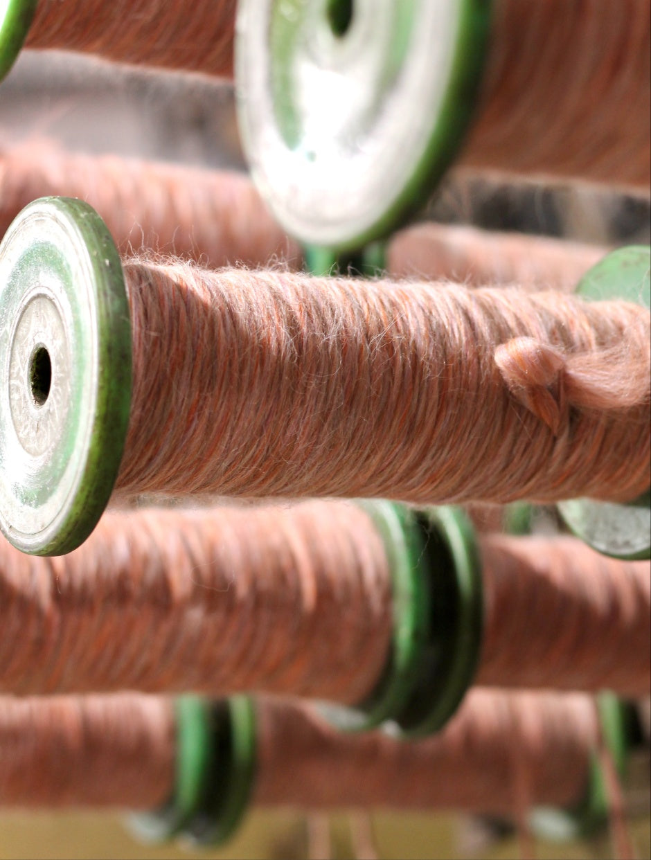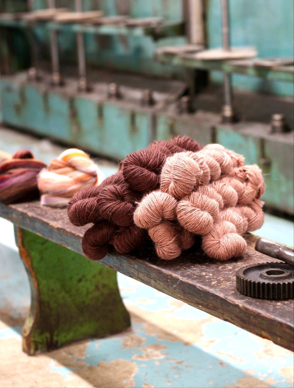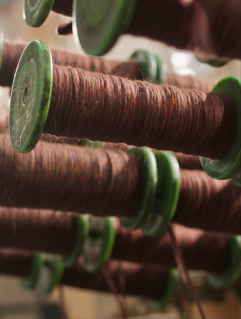 Our Mill is one of only a handful of small-scale worsted spinning mills still operating in the UK. Many of our vintage machines were rescued from old, traditional mills before their closure. Keeping them going is a labour of love, but we reckon that the resulting woolly treats are well worth it!