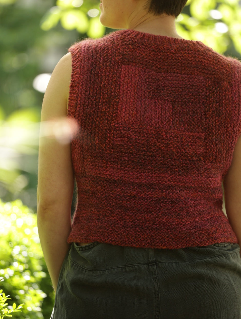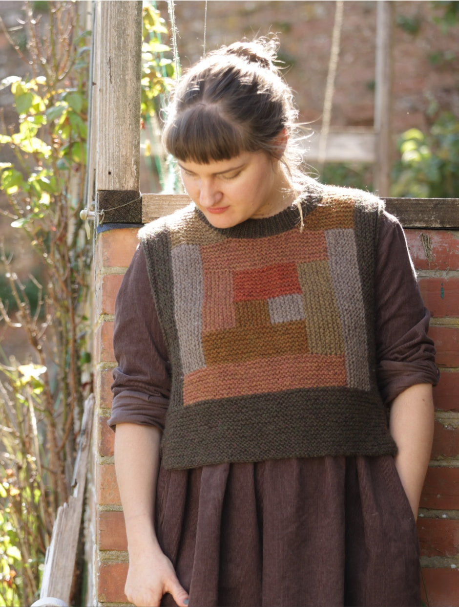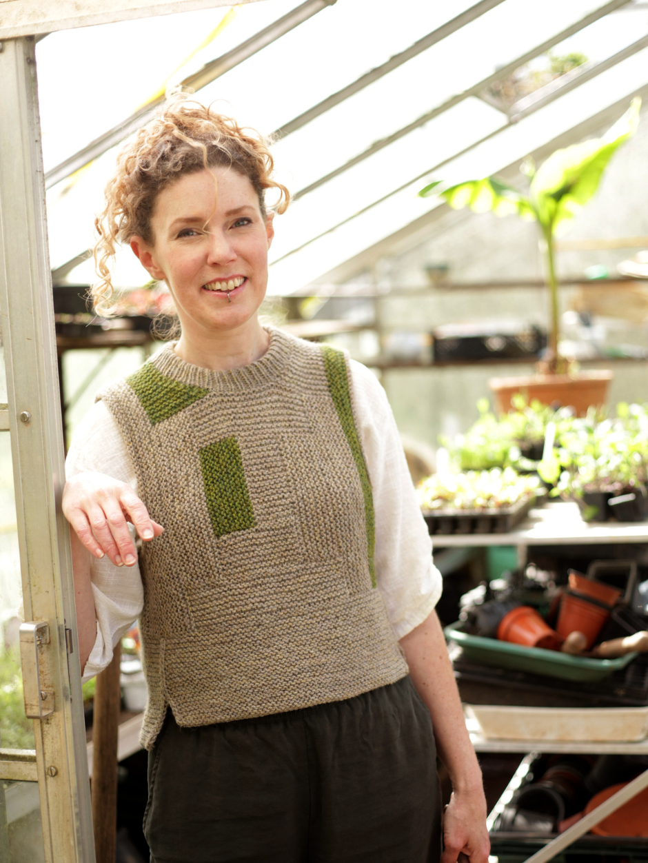 The playful Walled Garden Vest by Sonja Bargielowska is inspired by mossy paving stones and the patina of old brickwork. With its log-cabin construction, you can easily add as much or as little colour as you like.
