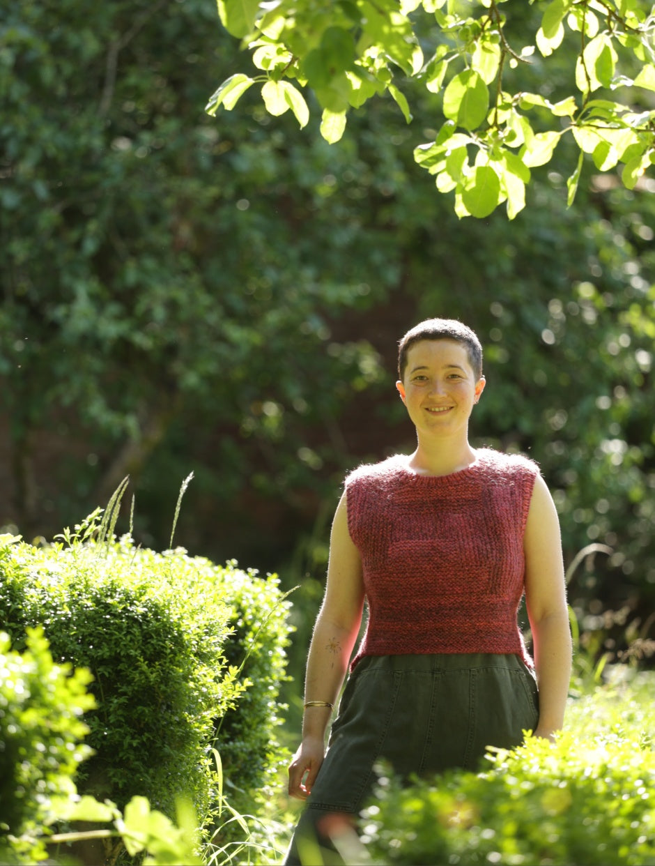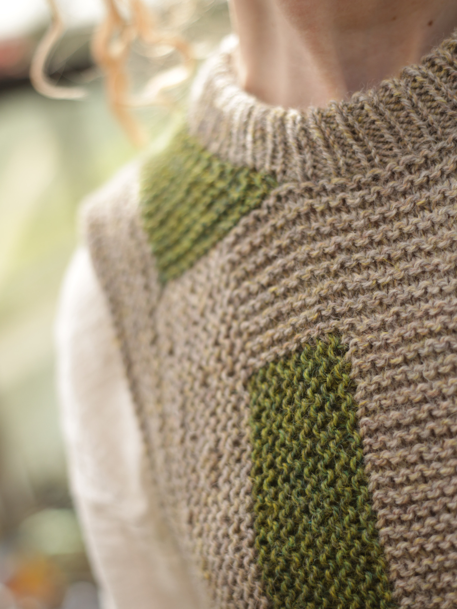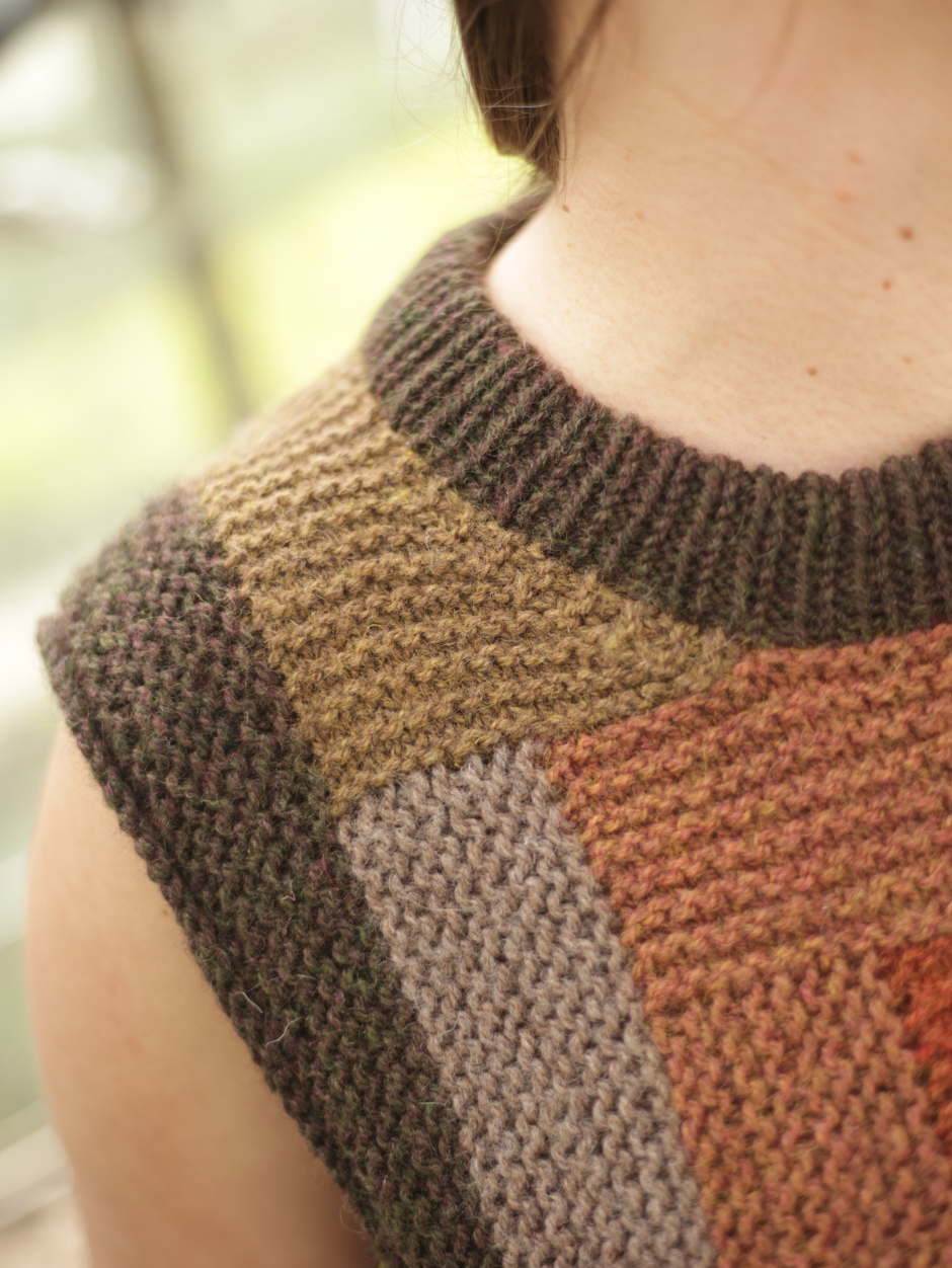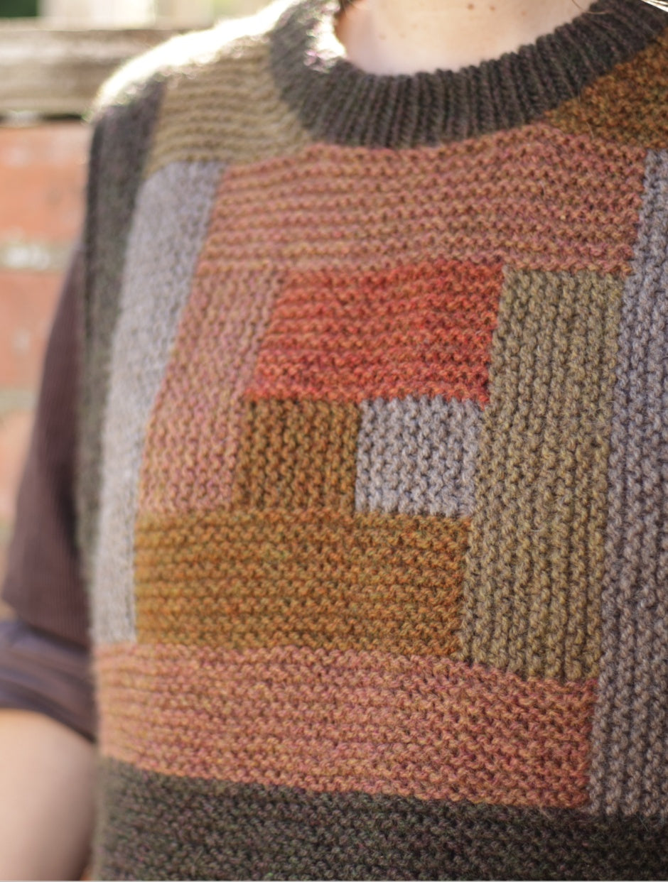The playful Walled Garden Vest by Sonja Bargielowska is inspired by mossy paving stones and the patina of old brickwork. With its log-cabin construction, you can easily add as much or as little colour as you like.
