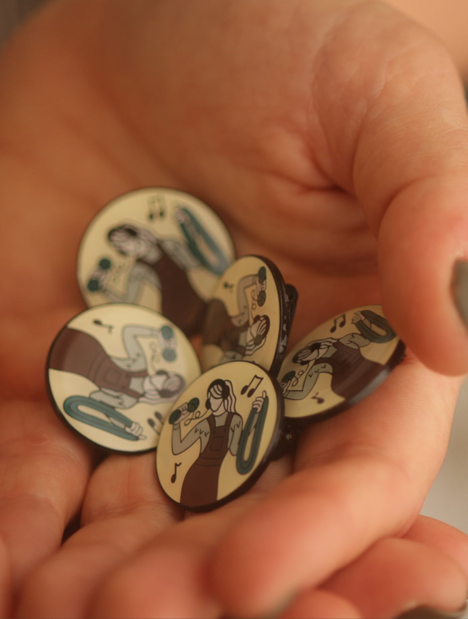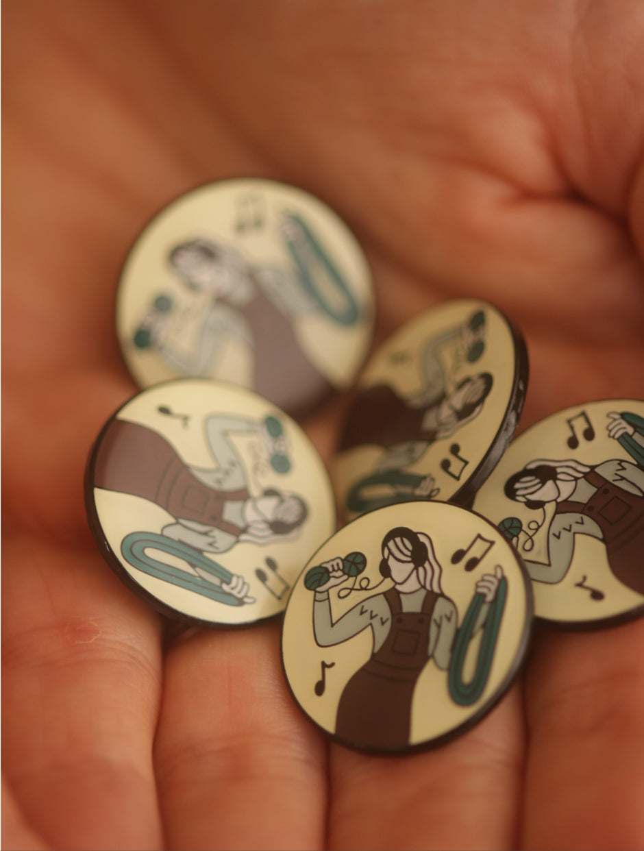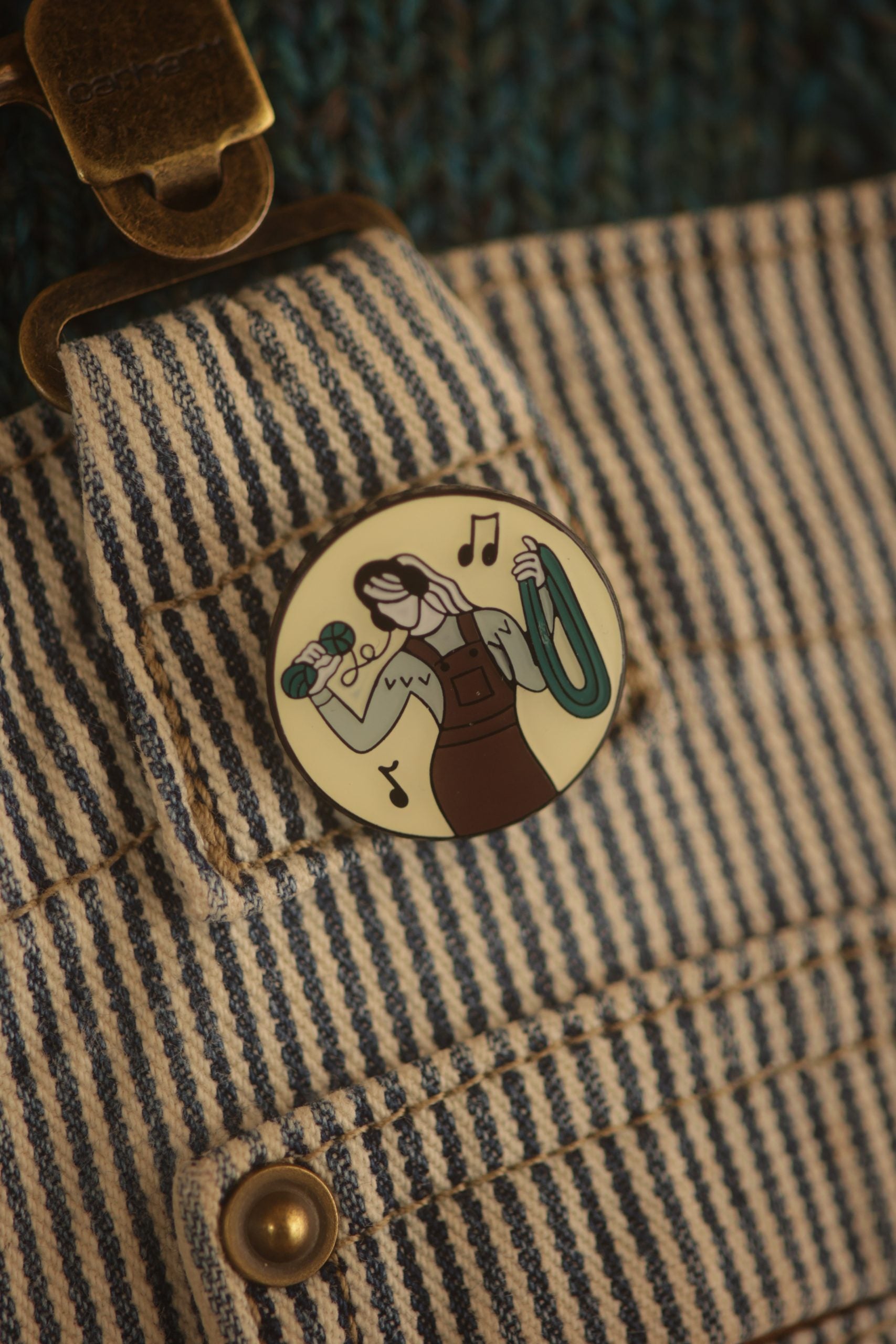 These pins are the best way to add some extra personality and decoration to your project bags, knitwear projects and jacket lapels. Aleks’ illustration, created especially for our 2024 Mill Open Weekend perfectly captures the joy and fun of our event! Aleks has used the same colour palette as our special edition yarns, each shade designed by Aleks herself, Emily of Tin Can Knits and Ysolda Teague-Long. We all love a good dance with our yarn, and since our specials are created on our Yarnadelic base, it fits the theme perfectly!