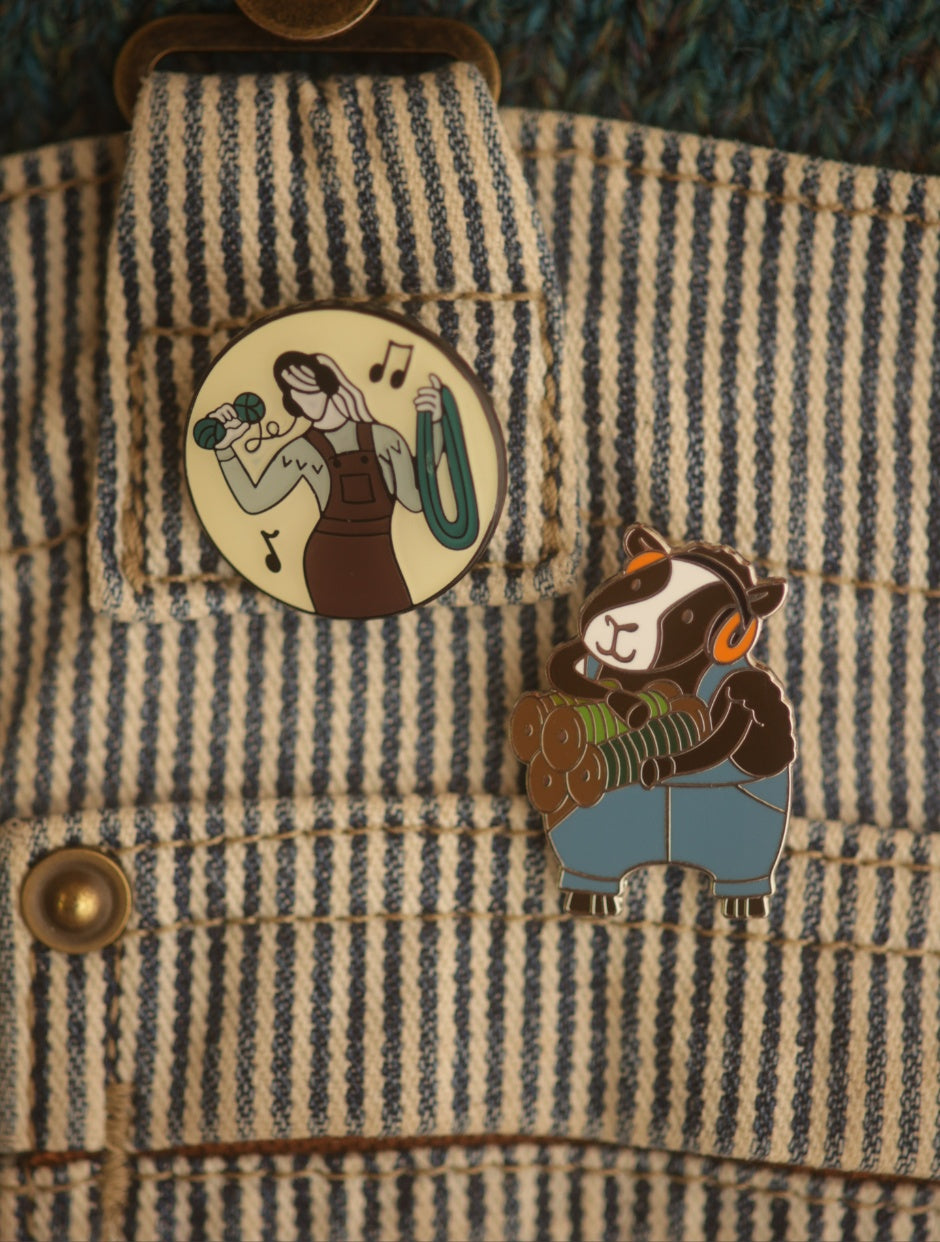 The fabulous Aleks Byrd has illustrated a glorious, limited edition design, inspired by our 2024 Mill Open Weekend special yarns! We loved it so much that we just had to use it to create some fabulous enamel badges to adorn your projects and bags.