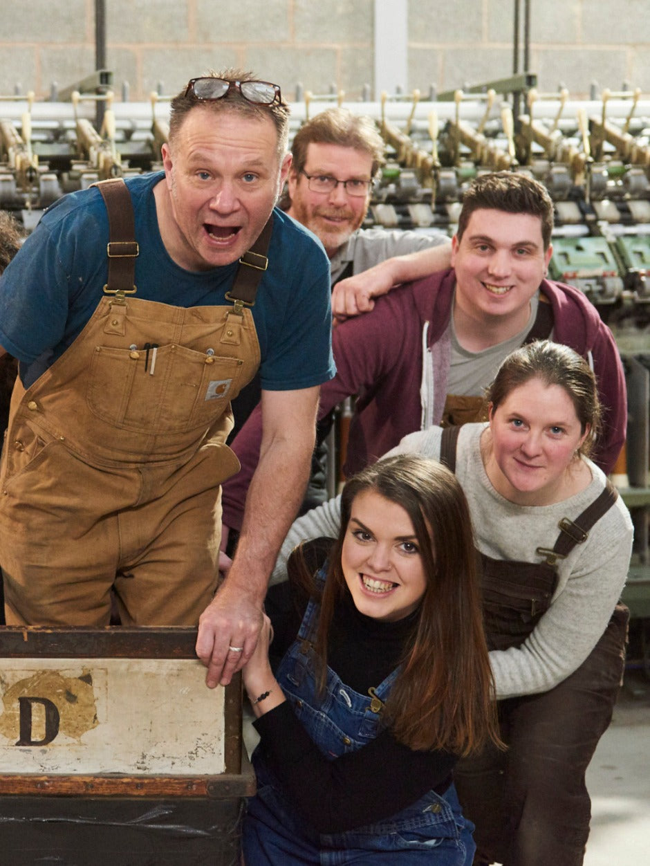 Our Mill is one of only a handful of small-scale worsted spinning mills still operating in the UK. Many of our vintage machines were rescued from old, traditional mills before their closure. Keeping them going is a labour of love, but we reckon that the resulting woolly treats are well worth it!